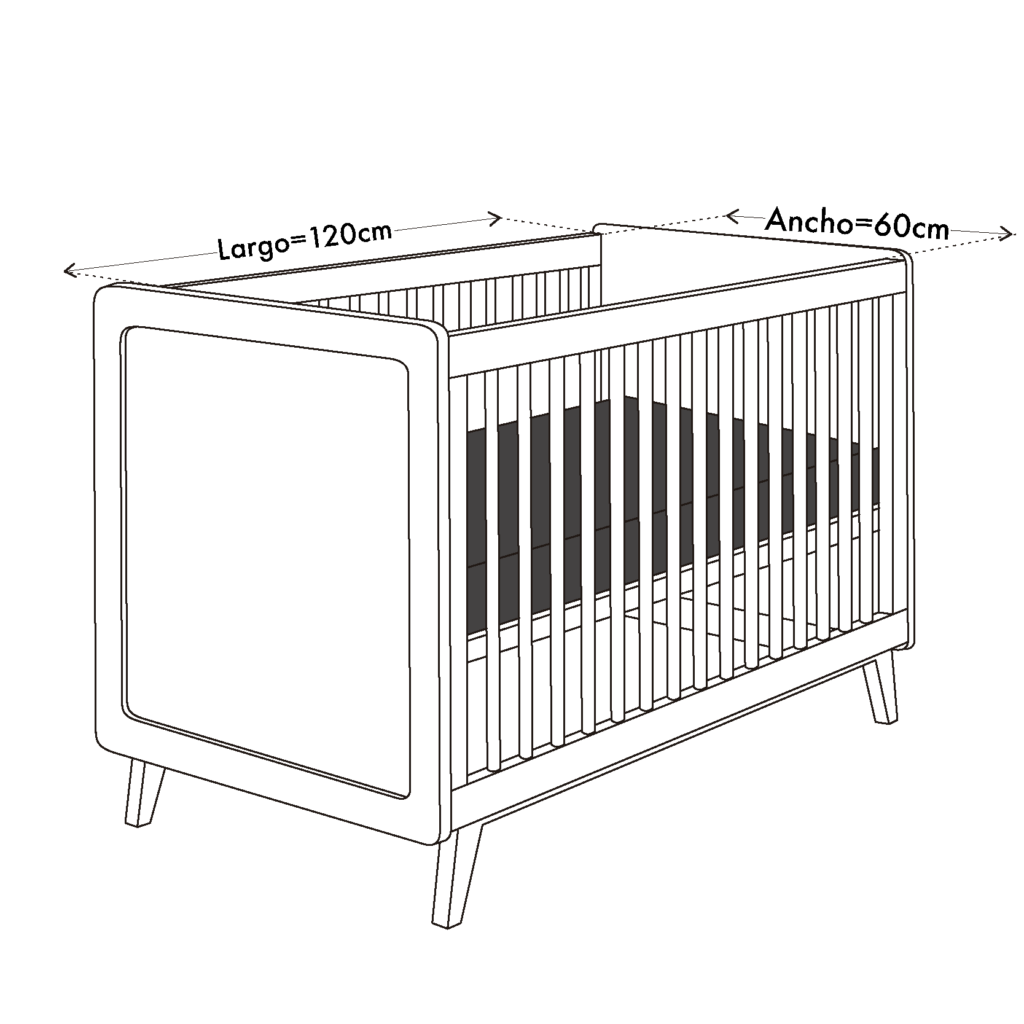 - Cuna estándar: aproximadamente 70 cm de ancho x 130 cm de largo.