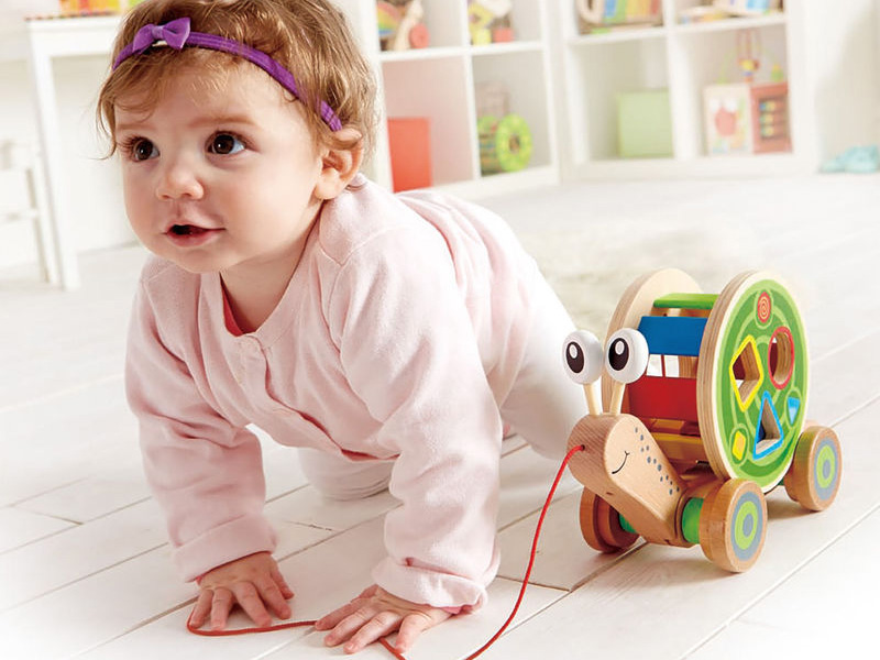 - 10 a 12 meses: juguetes para empujar y arrastrar, juguetes de imitación.
